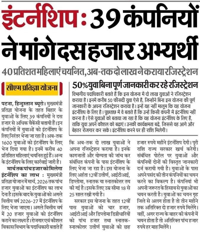अगर आप बिहार के युवा हैं और अनुभव + पैसे दोनों कमाना चाहते हैं, तो यह योजना आपके लिए बेस्ट ऑप्शन है। जल्दी से ऑफिशियल पोर्टल पर रजिस्टर करें और अपना करियर अगले लेवल पर ले जाएं