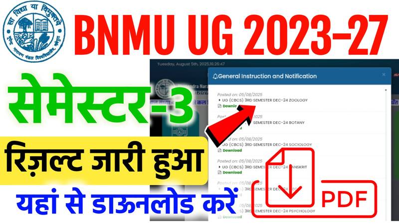 BNMU पार्ट 3 रिजल्ट जारी,BNMU 3rd Semester Result 2023-27