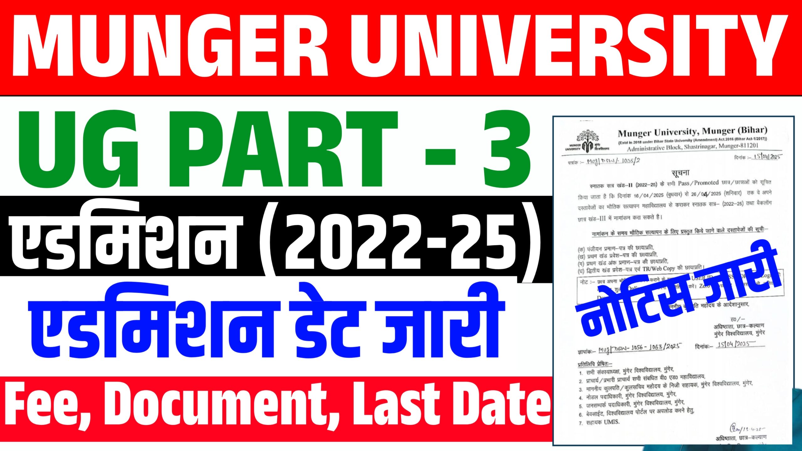 मुंगेर विश्वविद्यालय पार्ट 3 एडमिशन 2022-25 : हुआ शुरू – Munger University Part 3 Admission 2022-25
