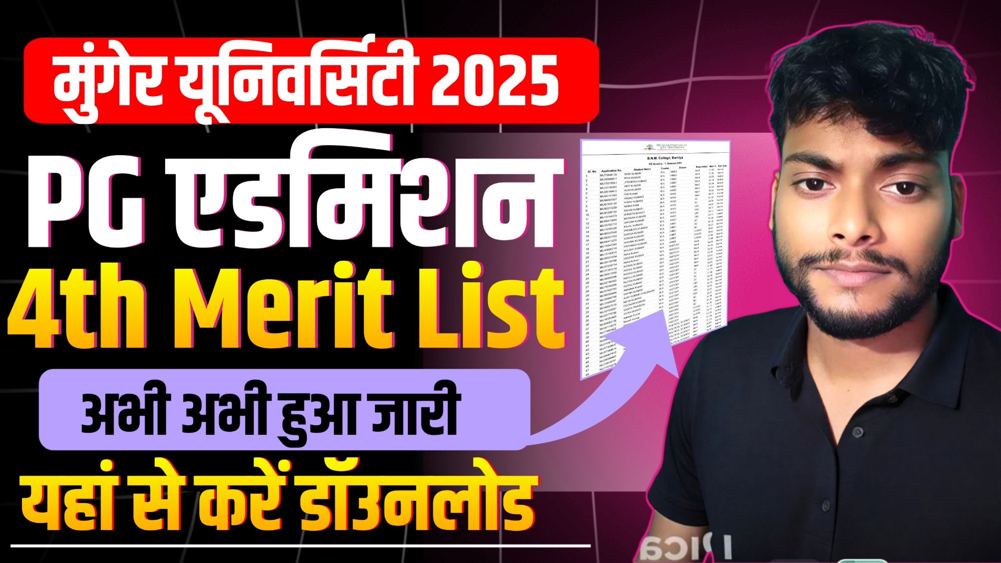 Munger University PG 4th Merit List 2025-27 – PG फर्स्ट मेरिट लिस्ट जारी ~ ऐसे करें डॉउनलोड